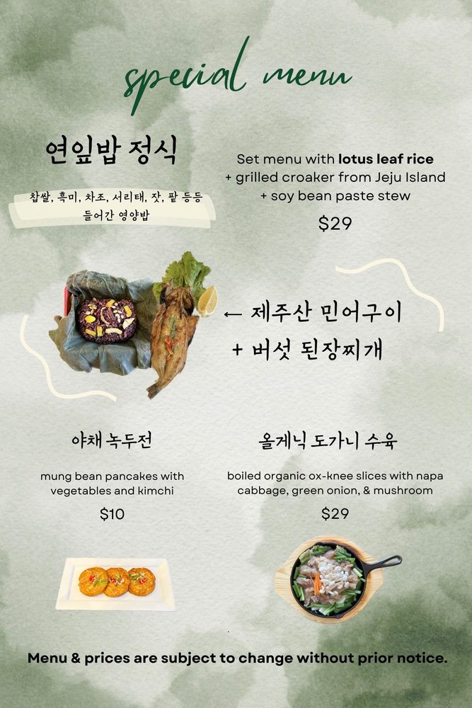 Customer reviews rave about the banchan variety, emphasizing fresh, healthy ingredients. The restaurant's clean, casual atmosphere and attentive service, complemented by a quirky robot for banchan delivery, enhance the dining experience. With options for vegan diets and outdoor seating, Jook Hyang caters to all preferences while embracing the vibrant essence of Korean dining.